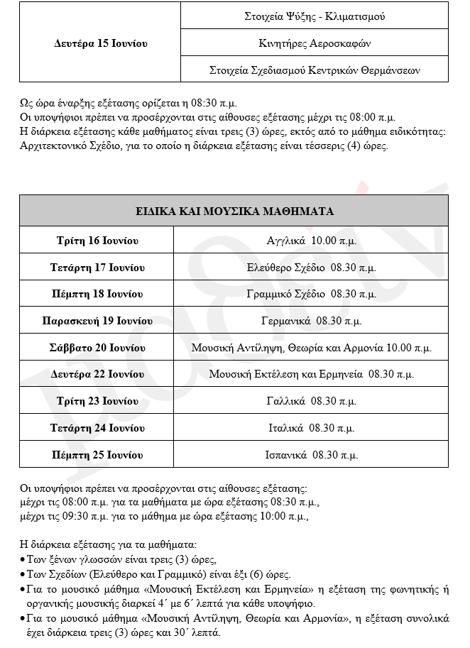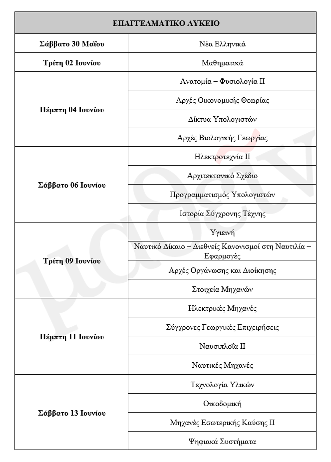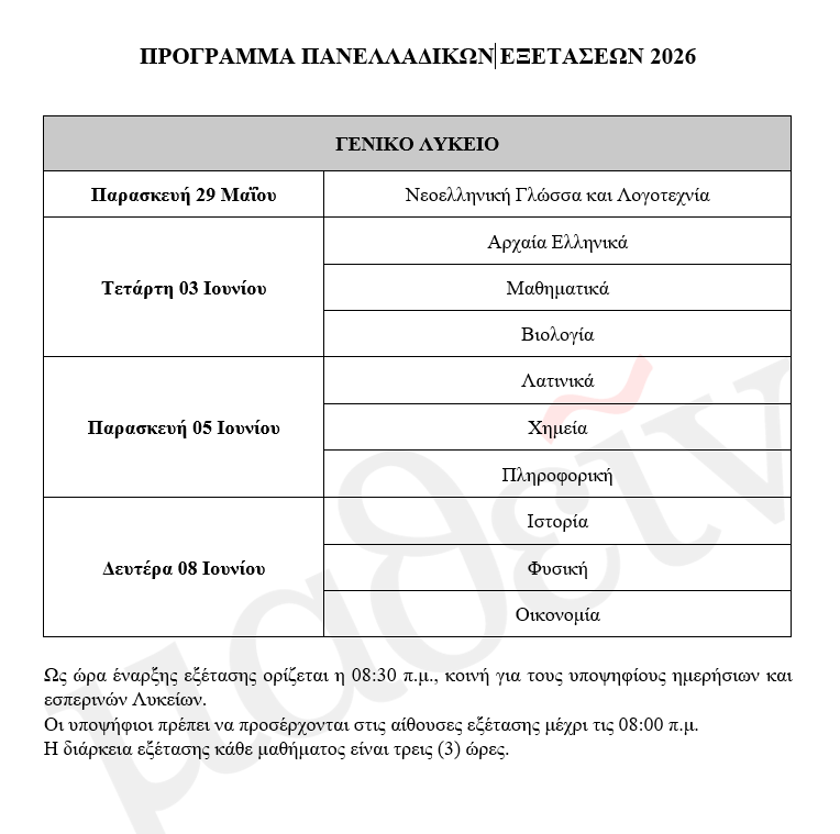 Πρόγραμμα Πανελλαδικών Εξετάσεων 2026